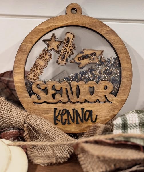 Mark your Class of 2026 milestone with this totally awesome laser-cut ornament! Featuring your school's signature colors, this custom piece combines wood and acrylic in a sleek design that's etched and stained to perfection. Add your name or personal touch to make it uniquely yours. Whether you're hanging it on your tree, displaying it in your room, or gifting it to a fellow grad, this personalized keepsake captures the spirit of senior year in the coolest way possible.